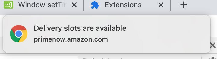 Chrome extension to notify when Prime Now or Amazon Fresh delivery slots are available.