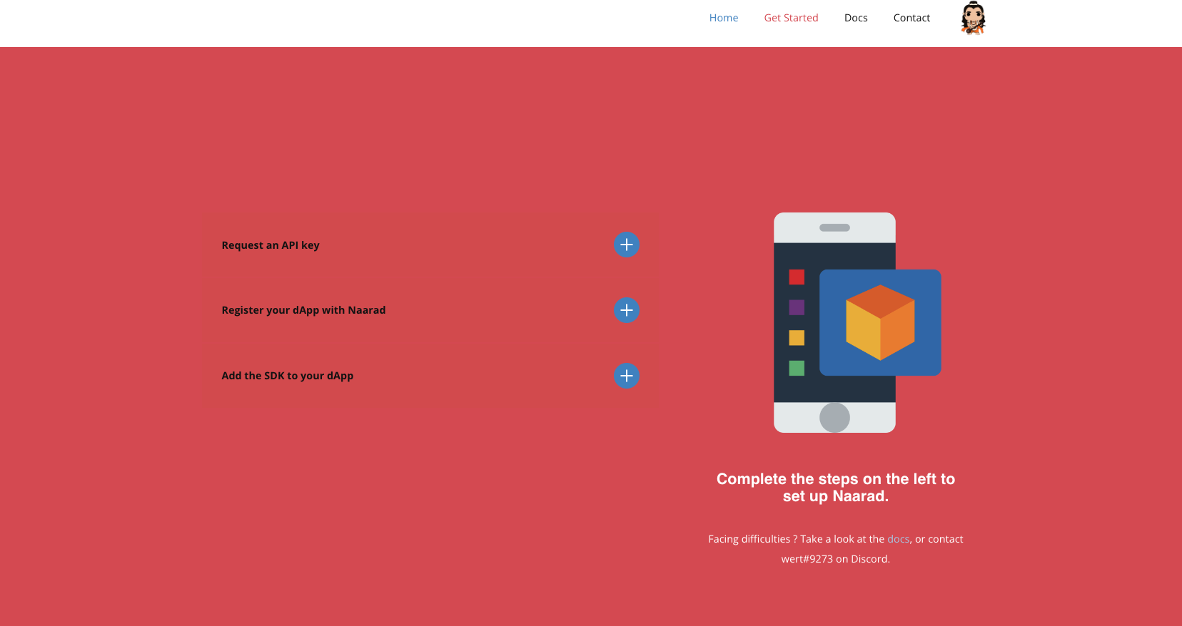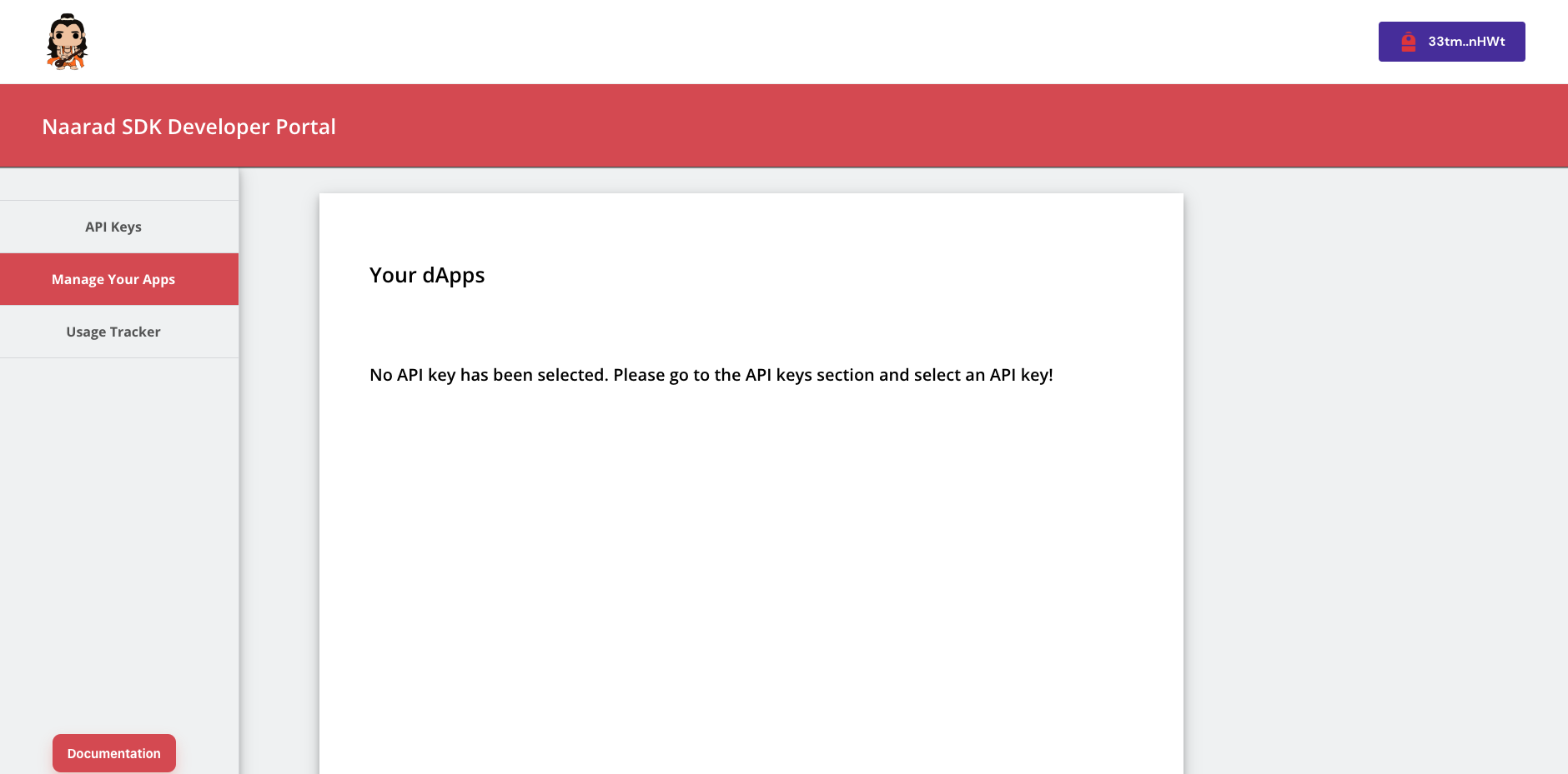The portal is to be used to manage Naarad API keys, dApps created by the user and usage tracking. Currently a WIP, users can still completely control their Naarad resources to be able to easily integrate Naarad using the UI.