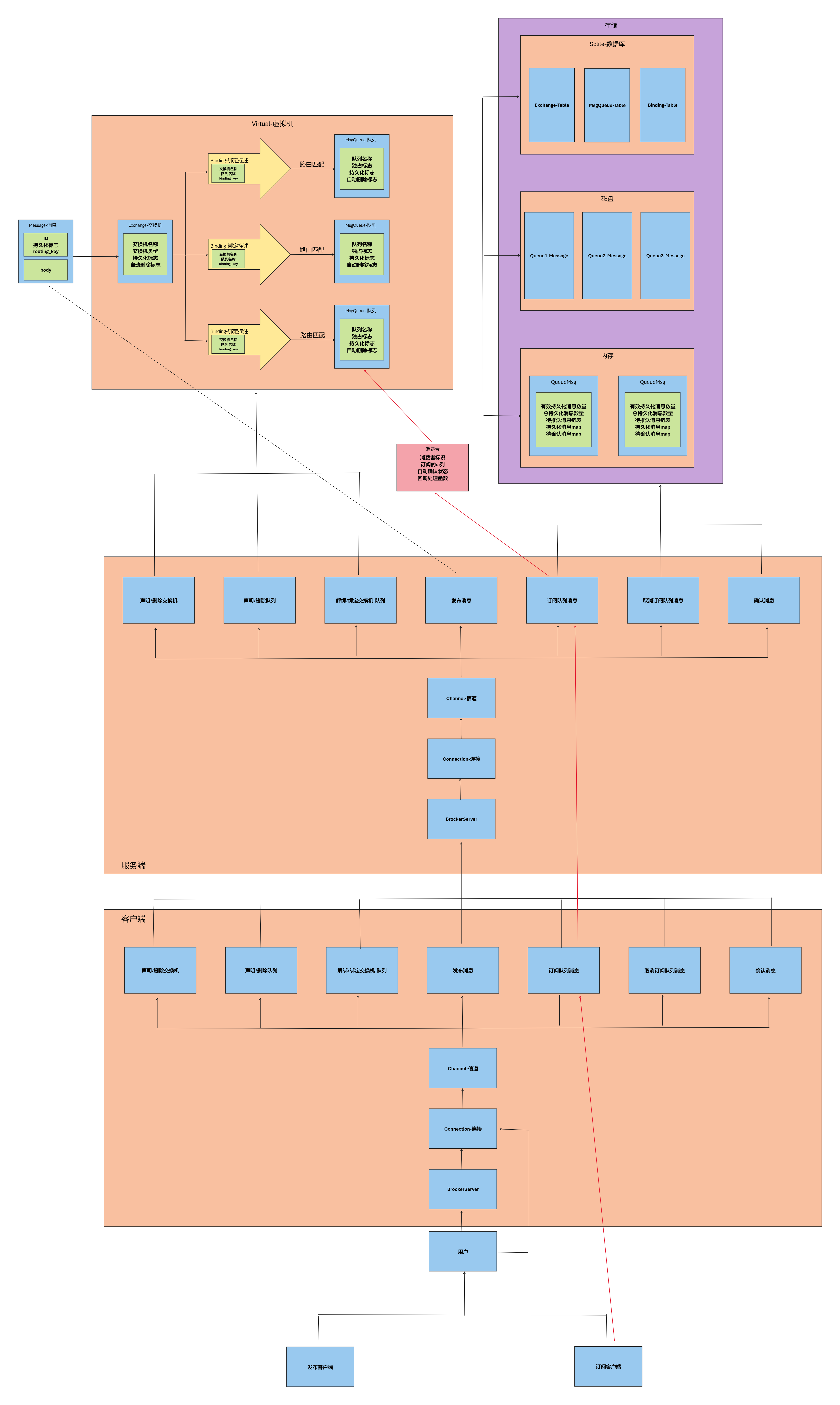 这里的消息队列服务器是中间人服务器, 就是作为整个系统最核心的部分, 负责消息的存储和转发