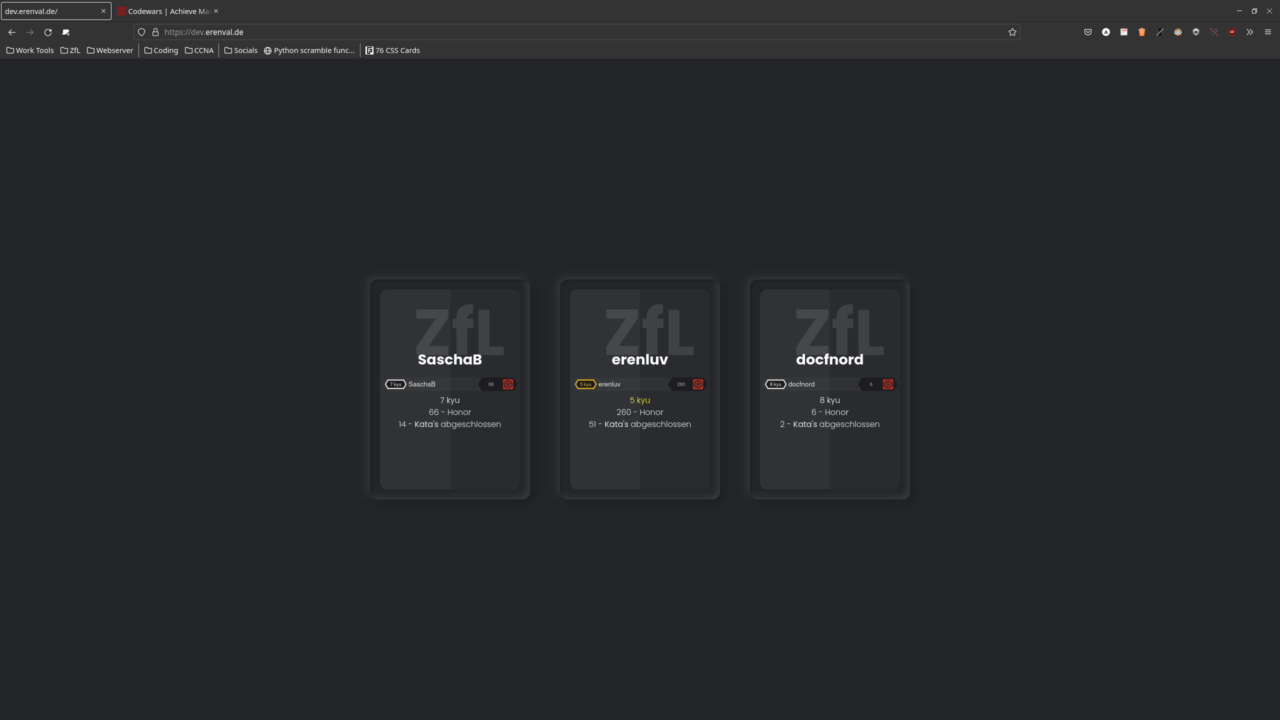 codewarsRanking Website for CodeWars Ranking between choosen players. To add players into the ranking add the usernames of the players into the main.js file. (var names = ["username", "username", "username"] This is what the page will look like: