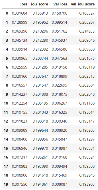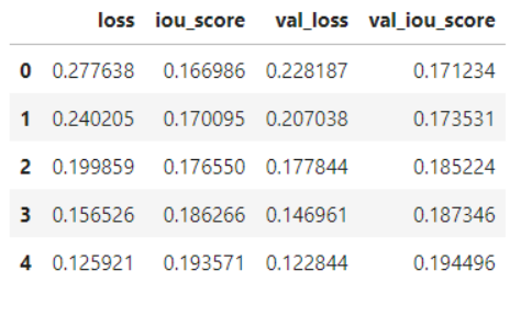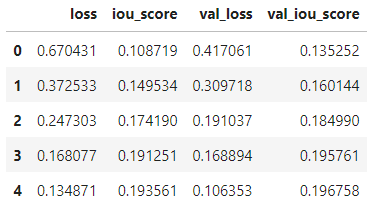 Notes: Increasing the epochs have shown improvements in the model's val_iou_score.