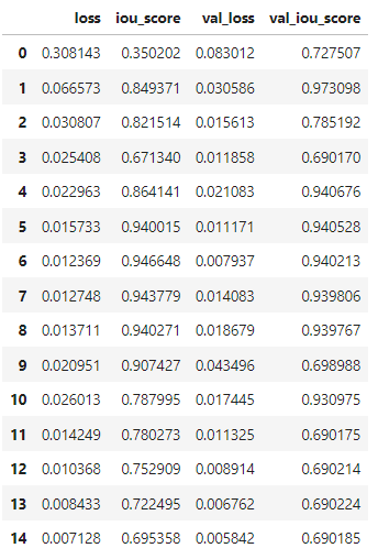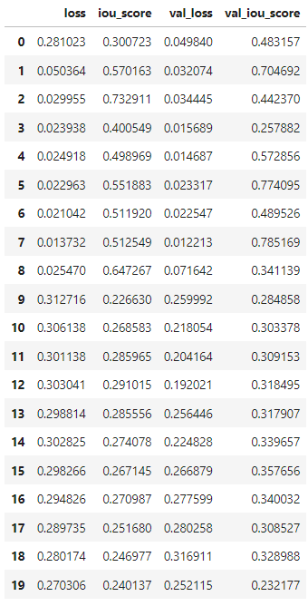 Notes: The model's val_iou_score is stable even in lower epochs.