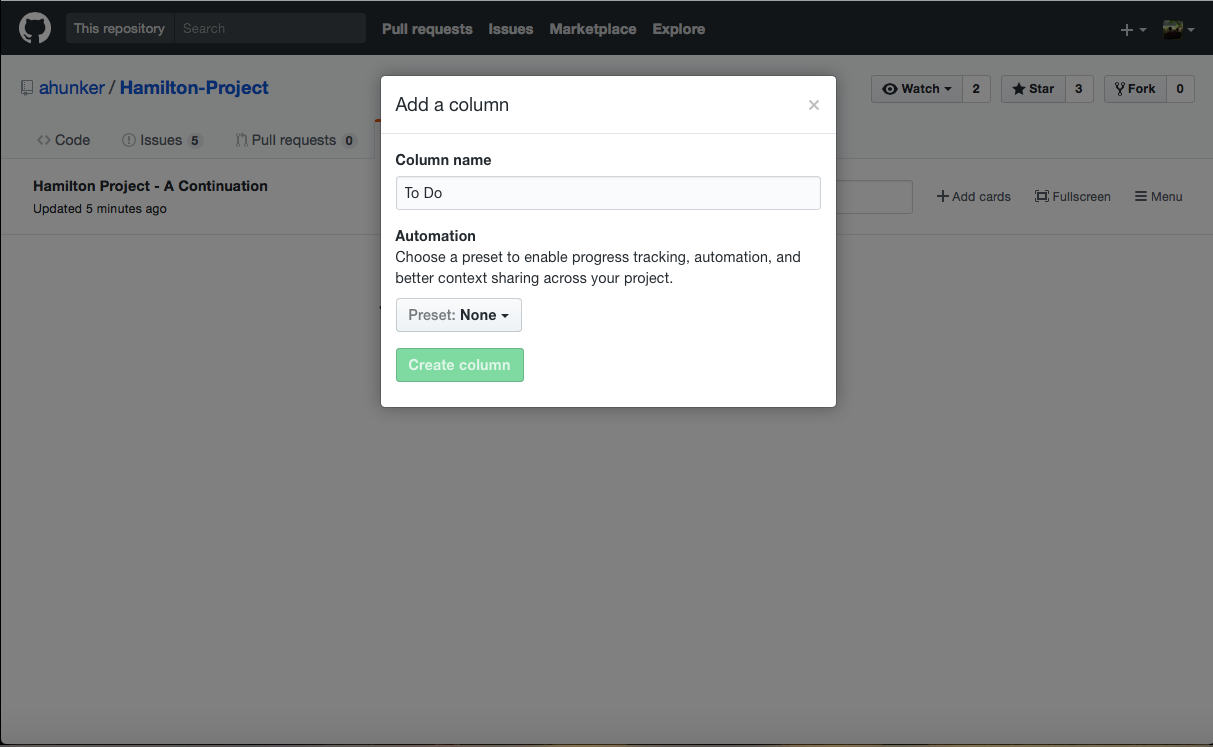 @ebeshero HELP! I have created a project board but I am unable to create columns and add notes currently. I do not understand why. It allows me to click on the 'Add a Column' button and put in information, but I cannot click the create button. This is what I see: