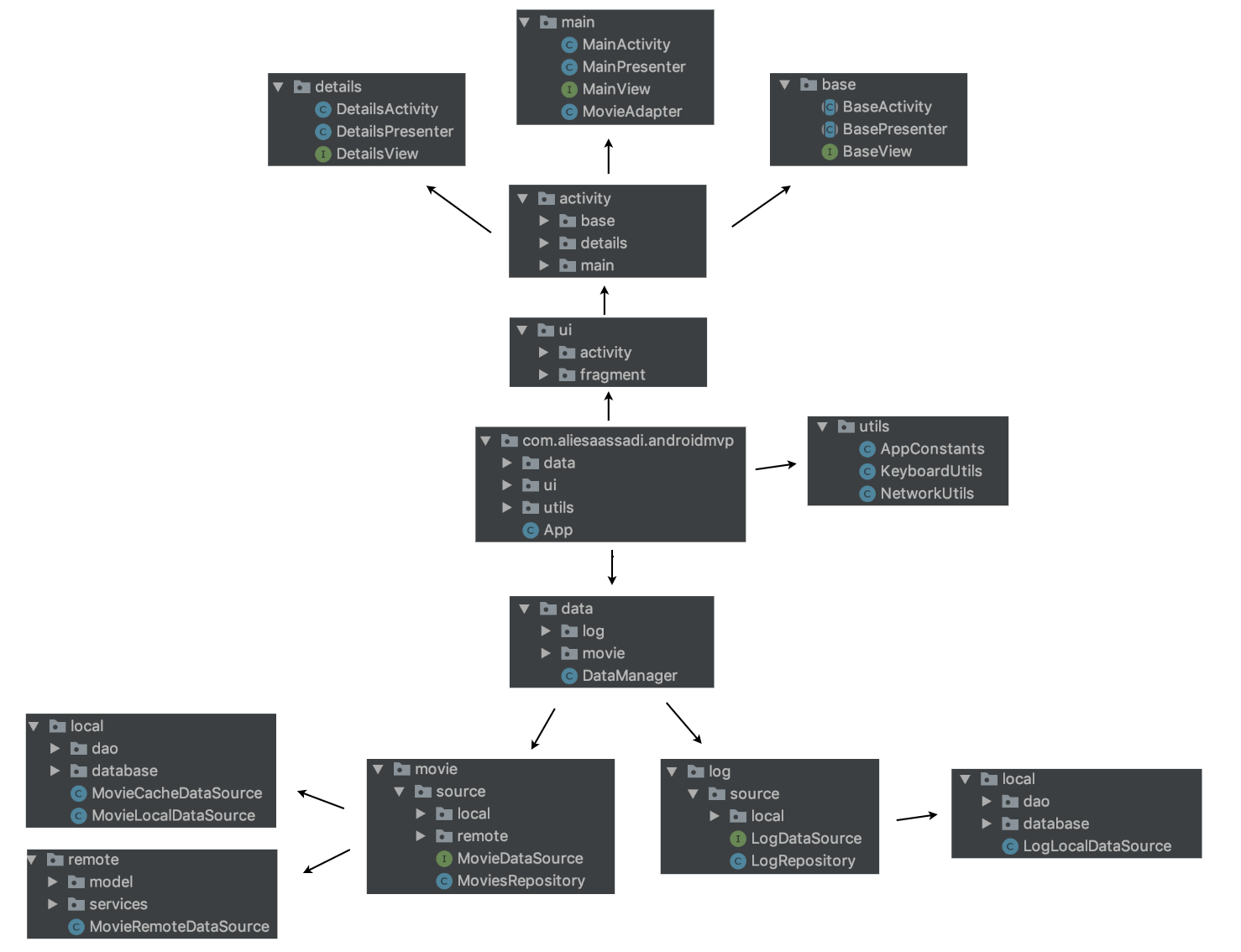 - ui: View classes along with their corresponding Presenters.