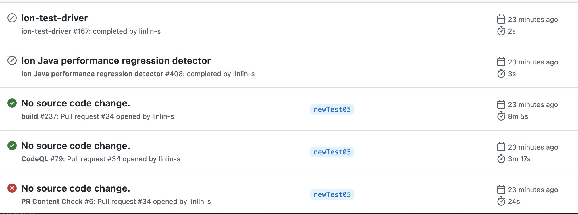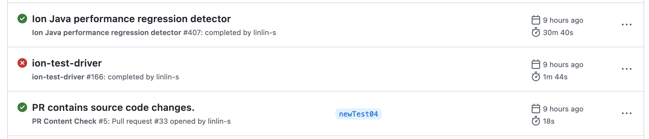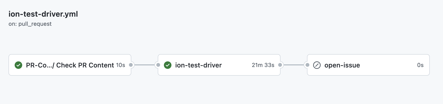 PR-content-checkto help us check whether there is any source code changes in the incoming PR. If the changed is detected, the workflow will be completed and executed successfully. WhenPR-content-checkworkflow is completed successfully,ion-test-driverandion-java-regression-detectionworkflows will be triggered. If thePR-content-checkis failed,ion-test-driverandion-java-regression-detectionwill not be executed.This PR also updated the version of