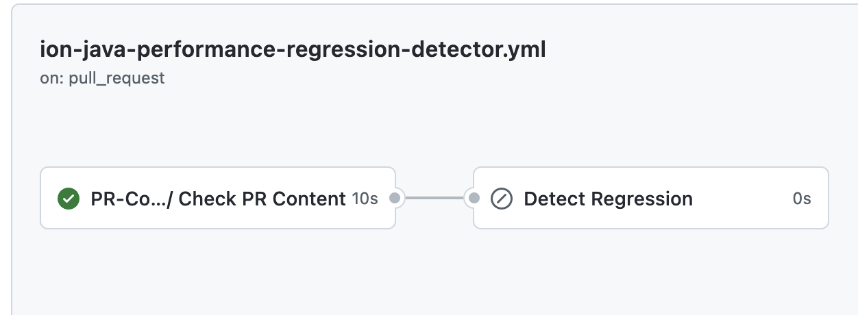 This not the only way. We can add the steps of PR-content-check to both ion-java-regression-detection.yml and ion-test-driver.yml. Since both of the share the same logic of checking PR content, I'd prefer to reuse the workflow PR-content-check.yml in both applicable workflows to avoid duplication.