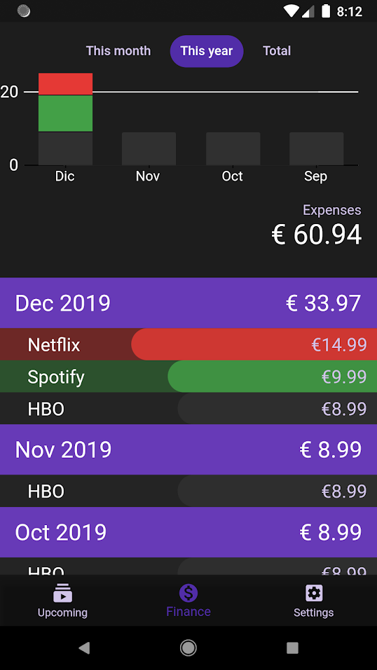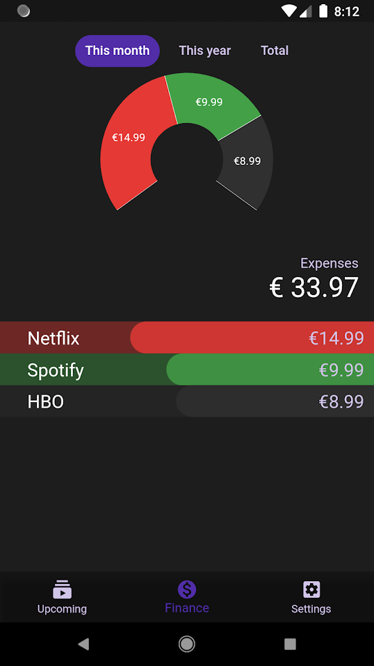 My Subscriptions is an application made entirely in Flutter and that has helped me to get into the development on this new Google platform. My Subscriptions is an application that is designed to add our different subscriptions to different services, Spotify, Netflix, Apple. Music, Amazon, etc ... and that through the application we have a more effective and direct control over the dates of renewal of these services and the expense we make in the different services to which we are subscribed. These expenses are reflected in the application through different graphs, both monthly, annual and total divided by dates and subscription types.
