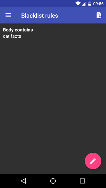 Welcome to NekoSMS! This tutorial will teach you how to write some basic filter rules (for experienced users, you might want to read the advanced guide instead). To get started, first make sure you are on the Blacklist rules page: