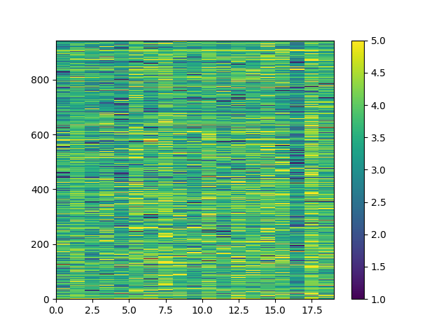 as well as a user vs ratings heatmap