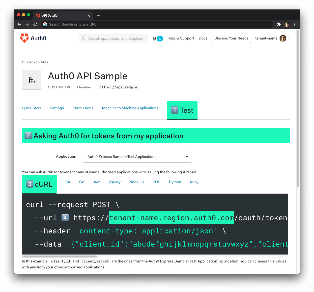 - Locate the section called "Asking Auth0 for tokens from my application".