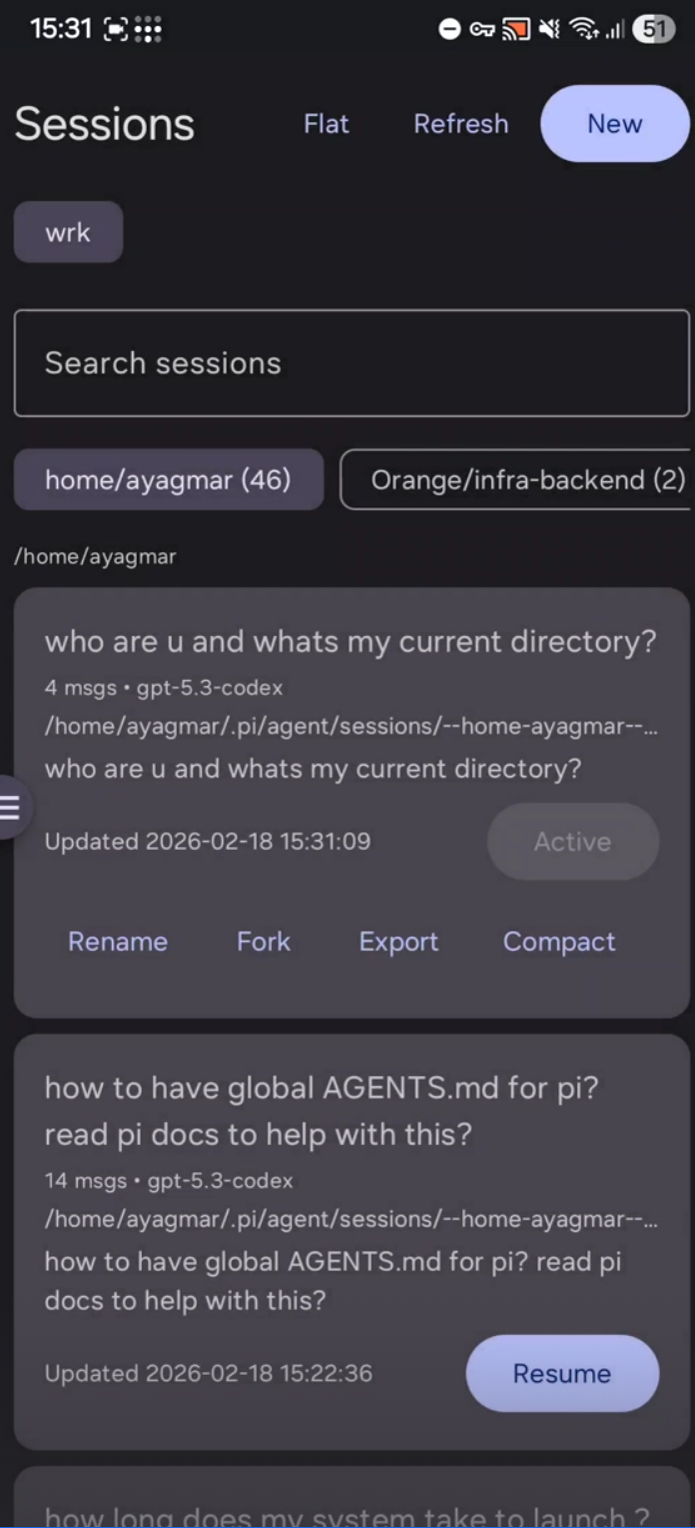 Your Pi coding agent, in your pocket. Run and steer coding sessions from Android anywhere over Tailscale.