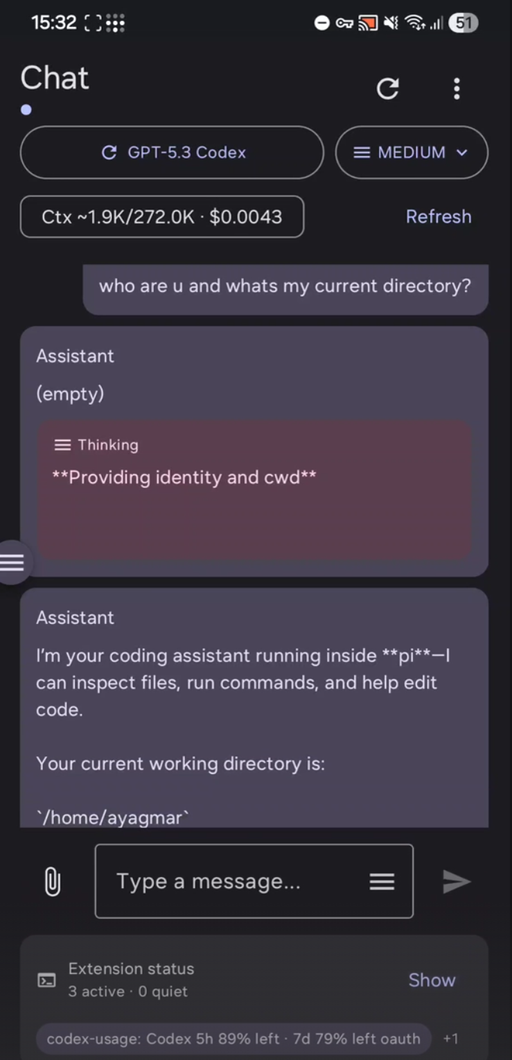 Pi Mobile is an Android client for the Pi coding agent. It gives you live session control when you’re away from your laptop.