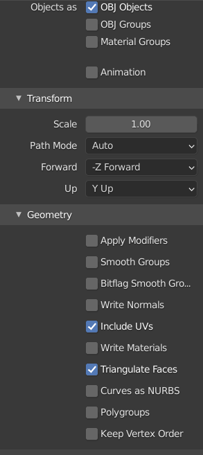 You need to check these boxes when exporting a .obj file from Blender: