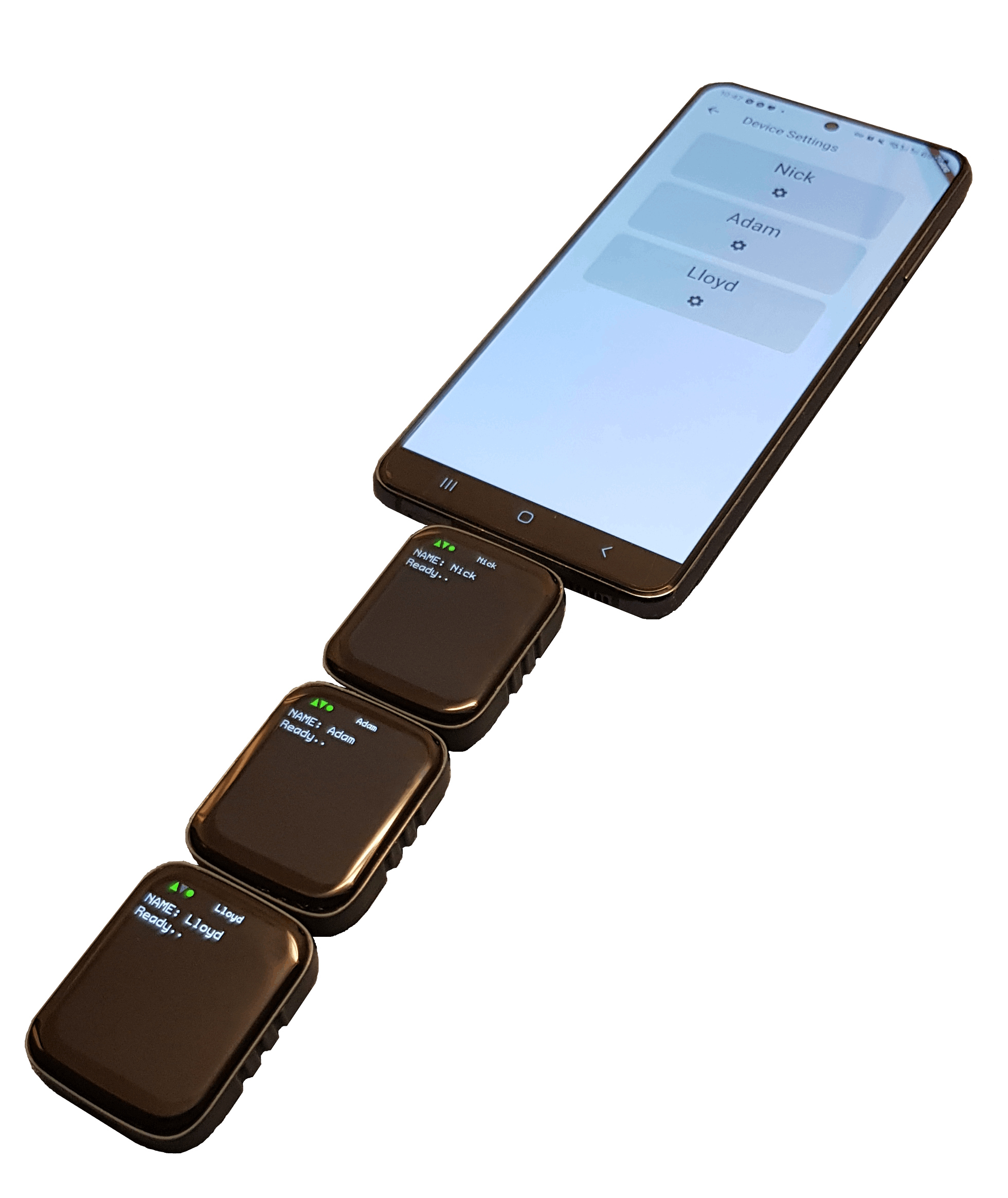 Frostsnap devices can seamlessly connect together in a daisy-chain, providing an easy way to create or upgrade a Bitcoin wallet protected behind multiple devices.