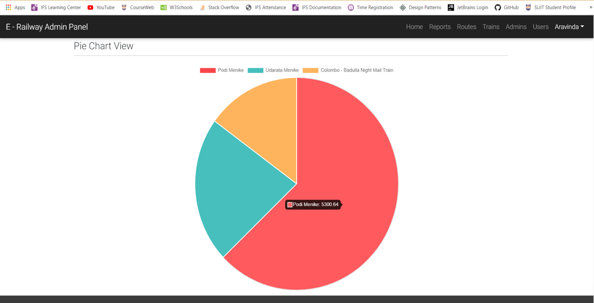 We have also implemented an admin panel to manage train routes, train station details, train details, and users. For the railway administrators, they can generate monthly and yearly financial reports filtered train wise.