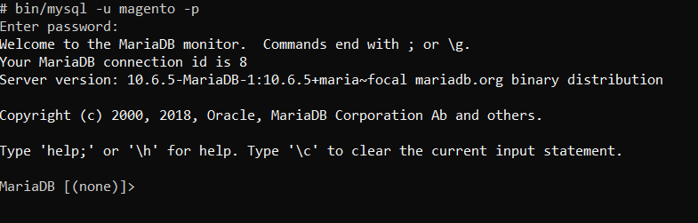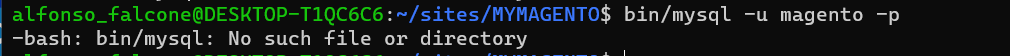 alfonso_falcone@DESKTOP-T1QC6C6:~/sites/MYMAGENTO$ bin/mysql -u magento -p -bash: bin/mysql: No such file or directory