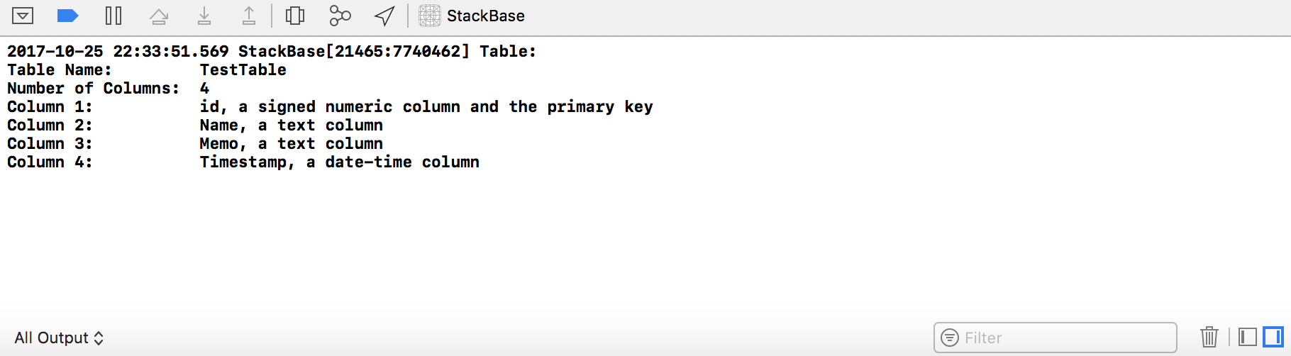 @import Stackbase;Now let's create a table. In the .m of wherever you have just imported StackBase run the following block: