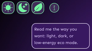 Eco Mode is a repo of code snippets and assets to support light/dark/eco mode support. With sustainable and efficient SVGs, JS, HTML, CSS snippets, and implementation advice (as comments in the suggested CSS, mainly).