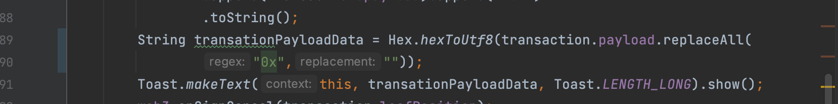 Toast.makeText(this, "Transaction: " + transaction.value, Toast.LENGTH_LONG).show();