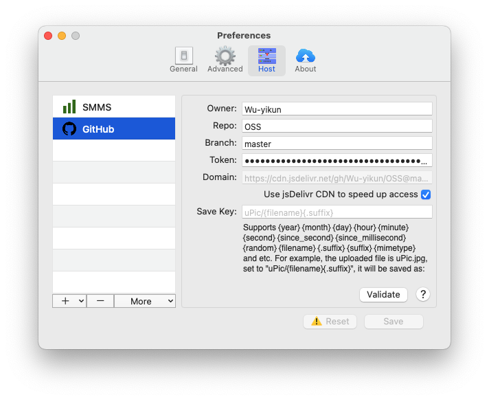随后在图床工具里面进行相关信息配置即可(username 需要和对应仓库 username 一致):