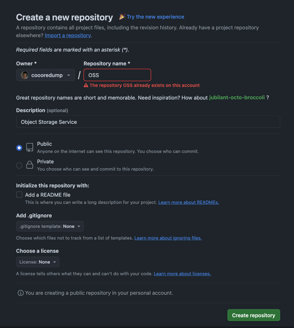 配置起来也还是很方便(默认你会使用 Github),首先新建一个公开仓库: