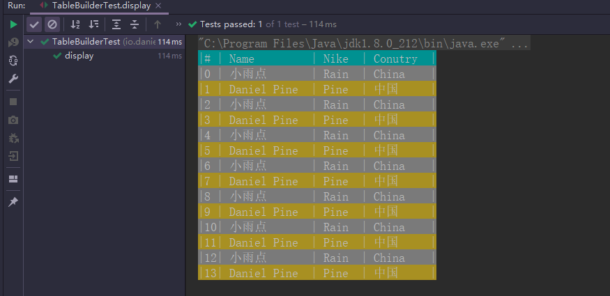 TableBuilder.newBuilder().display(