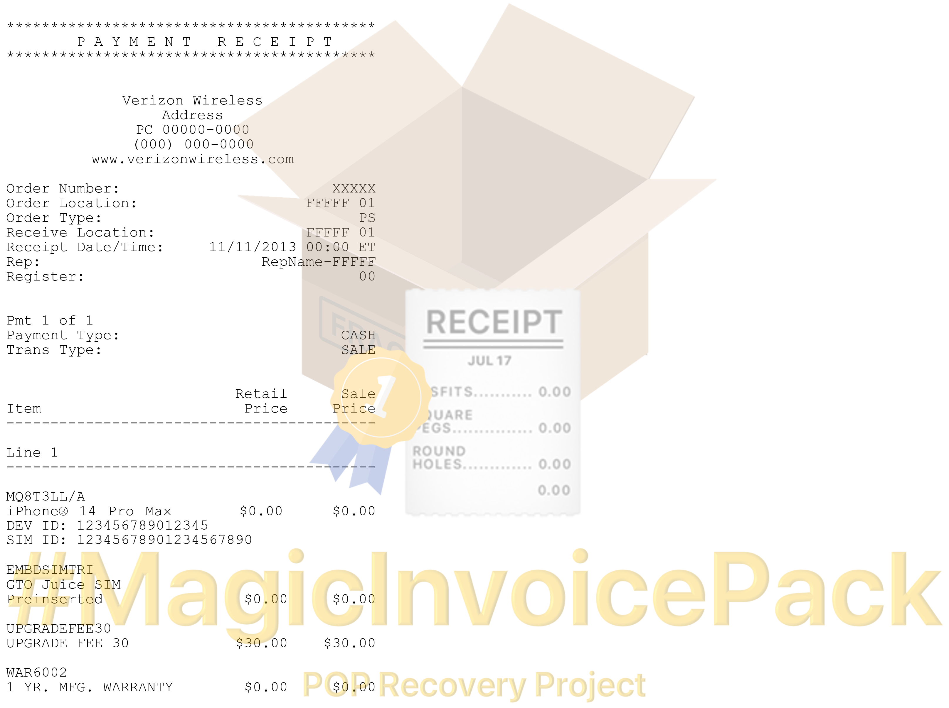 Welcome to #MagicInvoicePack, your trusted solution for recovering lost or damaged Proof of Purchase (PoP) across a wide range of devices, including Apple π, Xiaomi π±, Huawei π οΈ, Motorola π², Samsung π¦, and many other OEMs. Whether you're handling warranty claims, returns, replacements, or need official support with iCloud unlock π, Find My iPhone deactivation π³, or Activation Lock removal π«, our package has you covered.