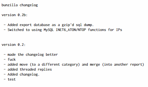 Changelog can additionally be viewed as plaintext or unstyled HTML for all versions or any particular version.