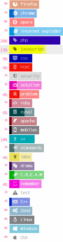 The JavaScript widgets I have written from scratch for this include the toolbar for inserting HTML, the preview functionality, and tag cloud on the index.