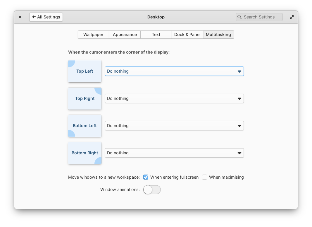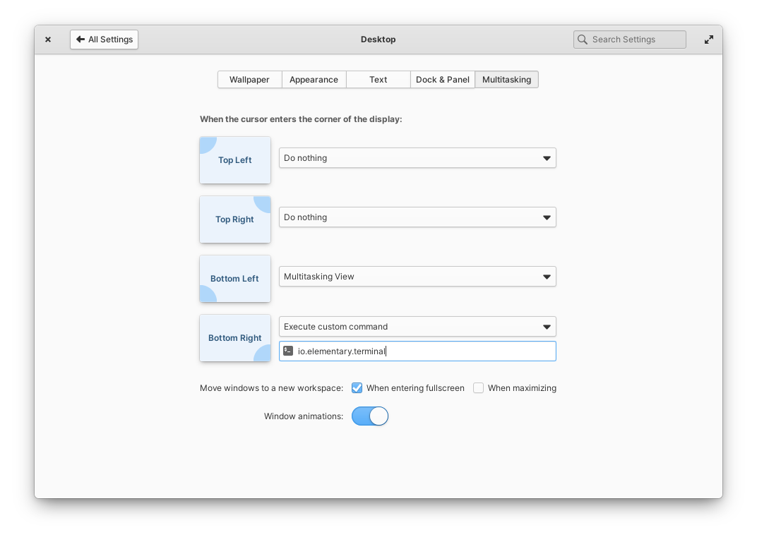 Also it looks like the settings and gala has the ability to have different custom commands assigned to different corners. As you can choose "custom command" for more than one corner it would make sense to have separate entries for each command command rather than an obscure way of entering multiple commands into one entry. This layout would facilitate that.