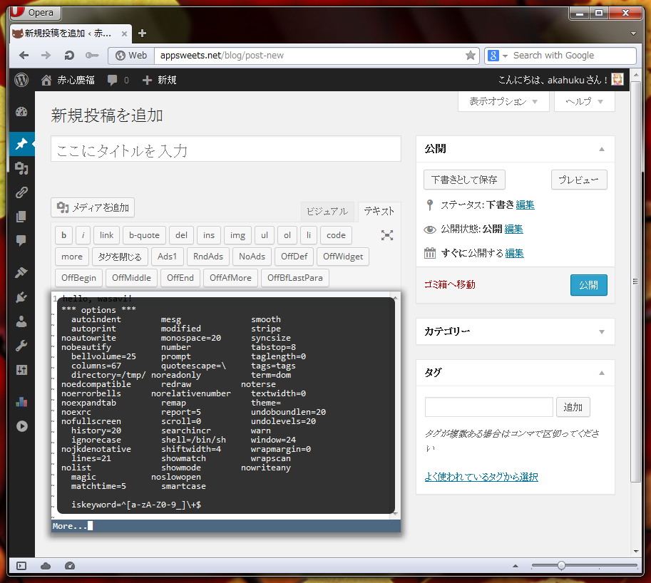 wasavi is under development. Any bug report or feature request is welcome.