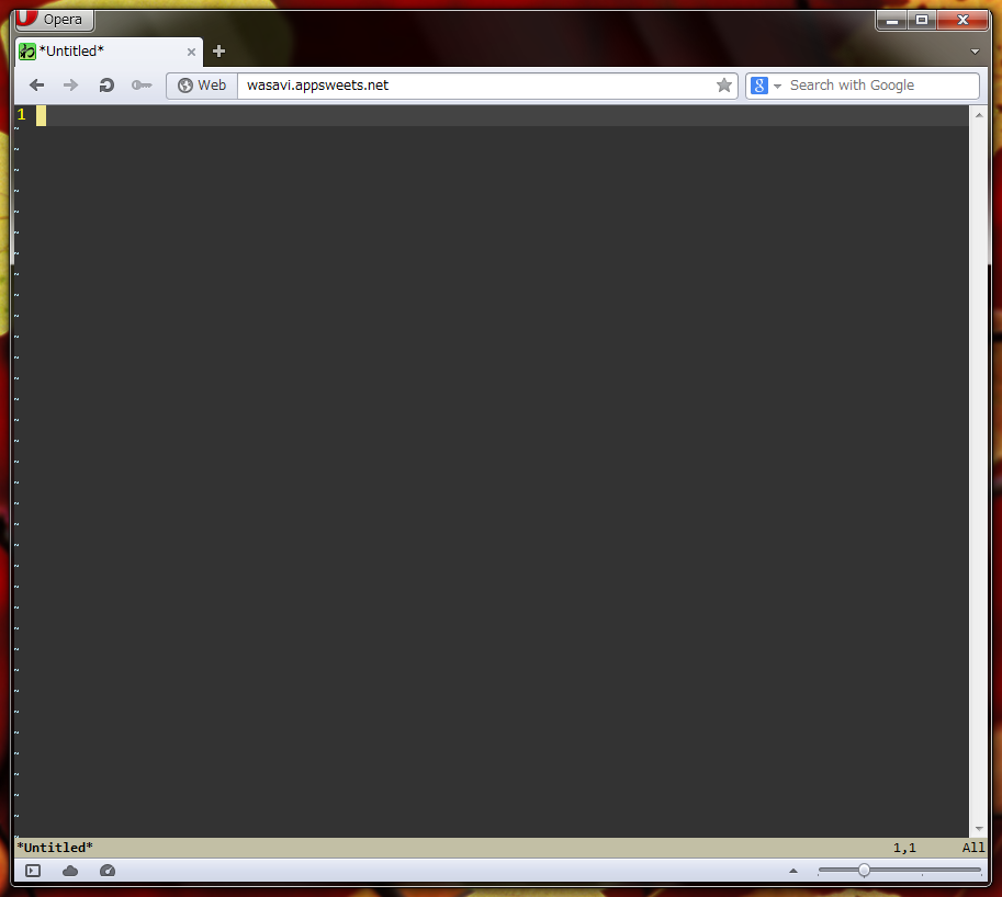 wasavi online app. Open this link on a browser that has wasavi extension. wasavi will launch automatically. Then you can read and write files at your Dropbox/Google Drive/OneDrive account or local files.