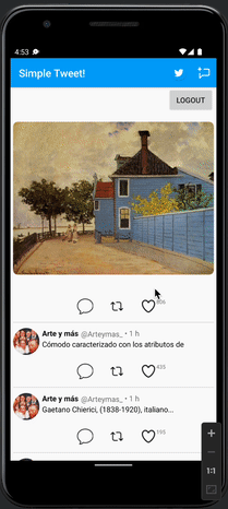 - User can open the twitter app offline and see last loaded tweets. Persisted in SQLite tweets are refreshed on every application launch. While "live data" is displayed when app can get it from Twitter API, it is also saved for use in offline mode.