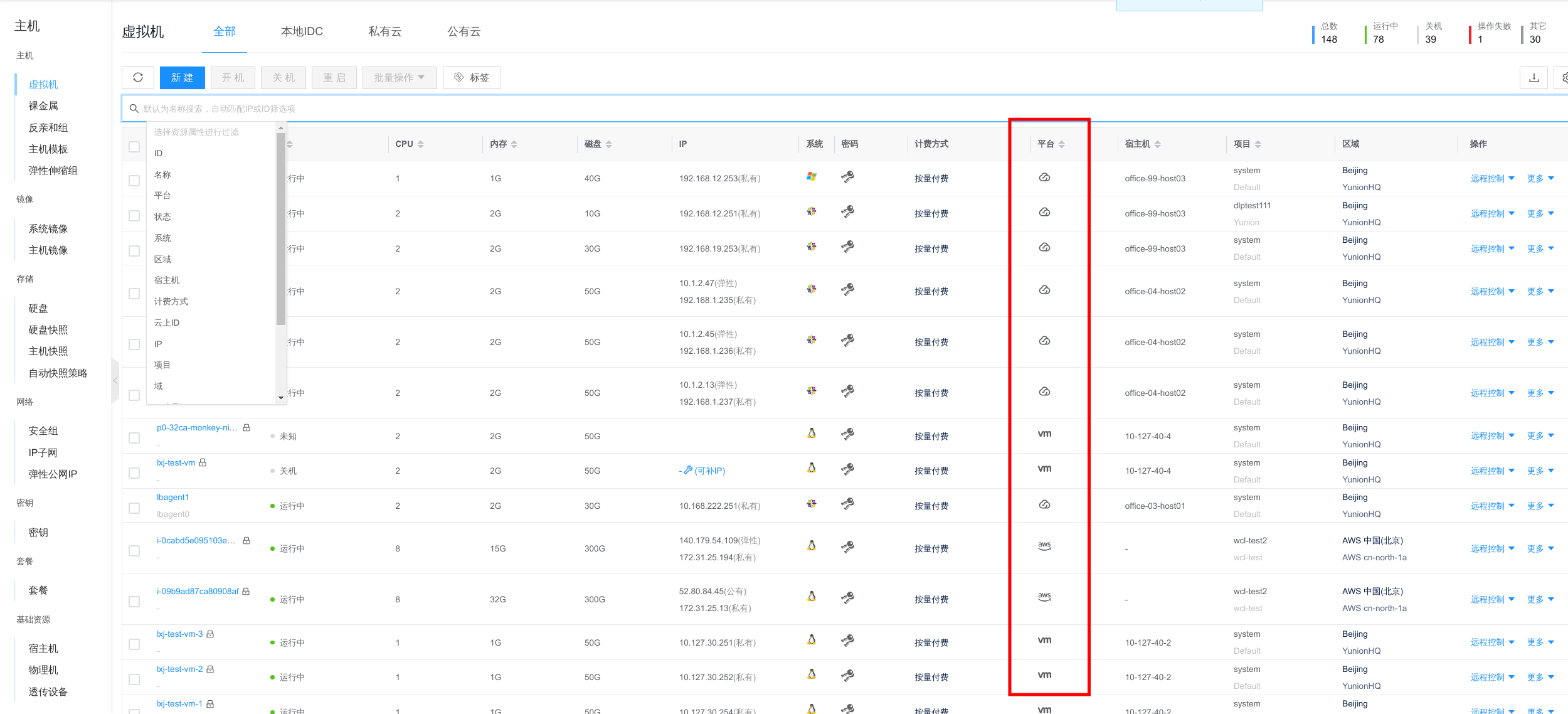 - Servers: instances, disks, network interfaces, networks, vpcs, storages, hosts, wires, snapshots, snapshot policies, security groups, elastic IPs, SSH keypairs, images