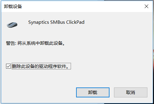 删除此设备的驱动程序软件,然后点卸载。如此做的话,Windows便会恢复到使用最初始的触摸板驱动程序。卸载完成后重启你的电脑: