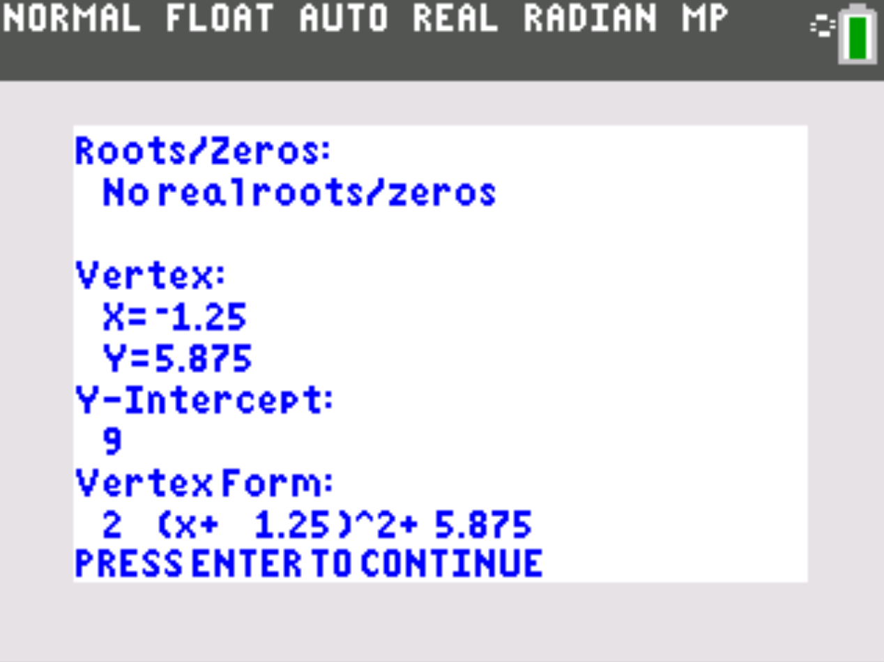 Here, you can find out a lot of information about quadratics, including converting to vertex form (which happens to randomly appear on the SAT and people, including me, forget how to do it) and to standard form from vertex form (even to both from factored form!). Choose which form of quadratic you are given and follow the prompts and, voila! You now know everything you need to know about that quadratic equation!