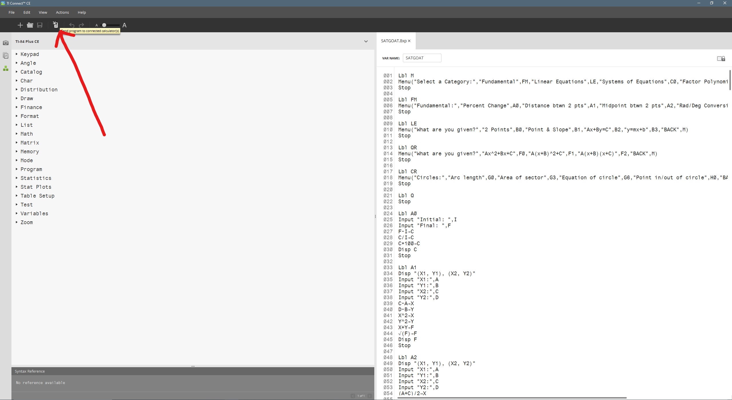 - Once the calculator stops scrolling through the code, see what archived variable is being used. In this example image here, the variable would be E