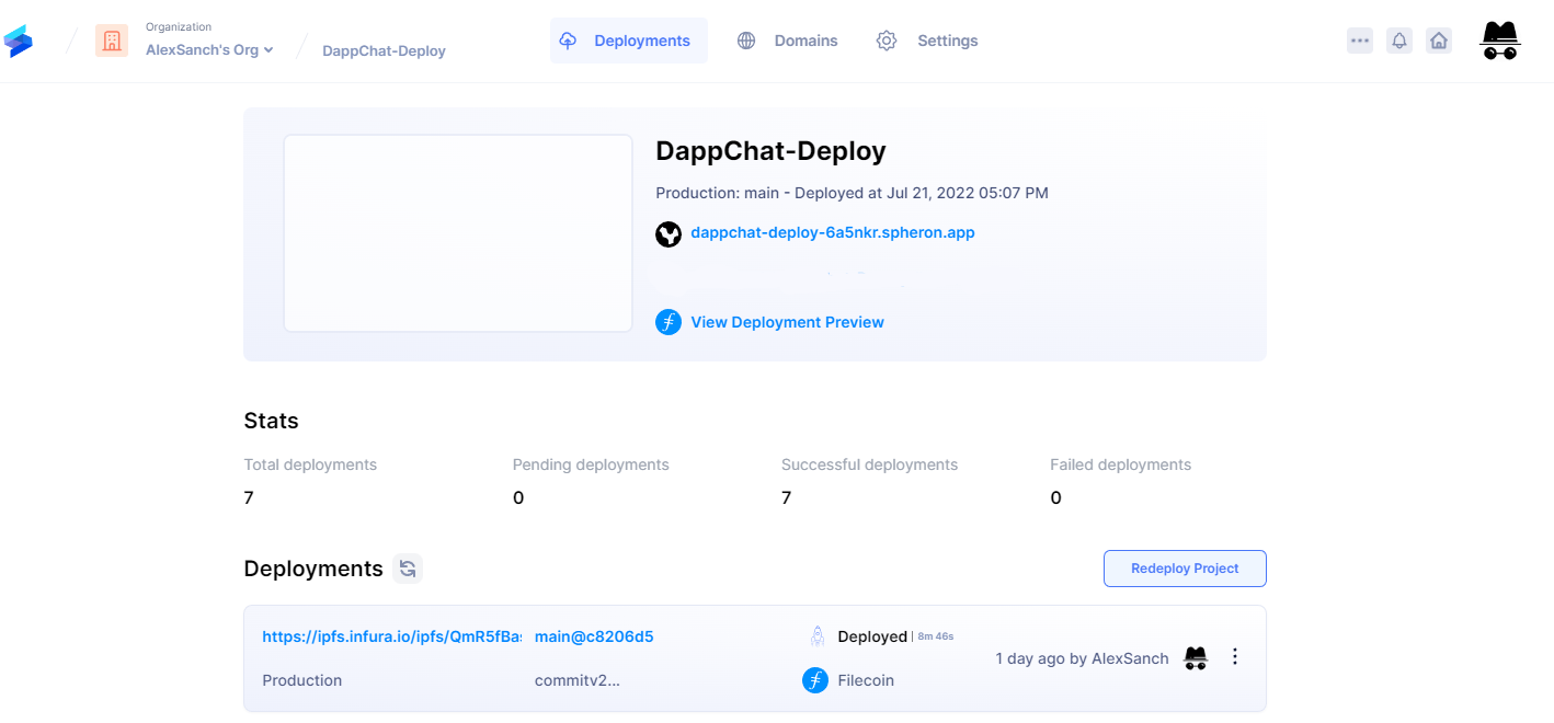 - Spheron URL: https://dappchat-deploy-6a5nkr.spheron.app/