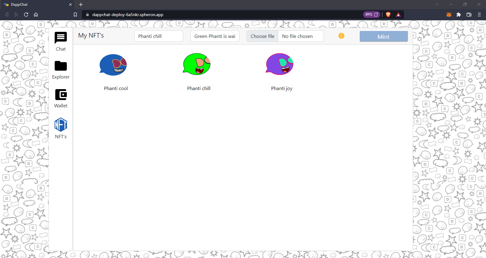 DappChat is a Decentralized chat application with document transfer capabilities and NFT services, while providing TradFi conveniences.