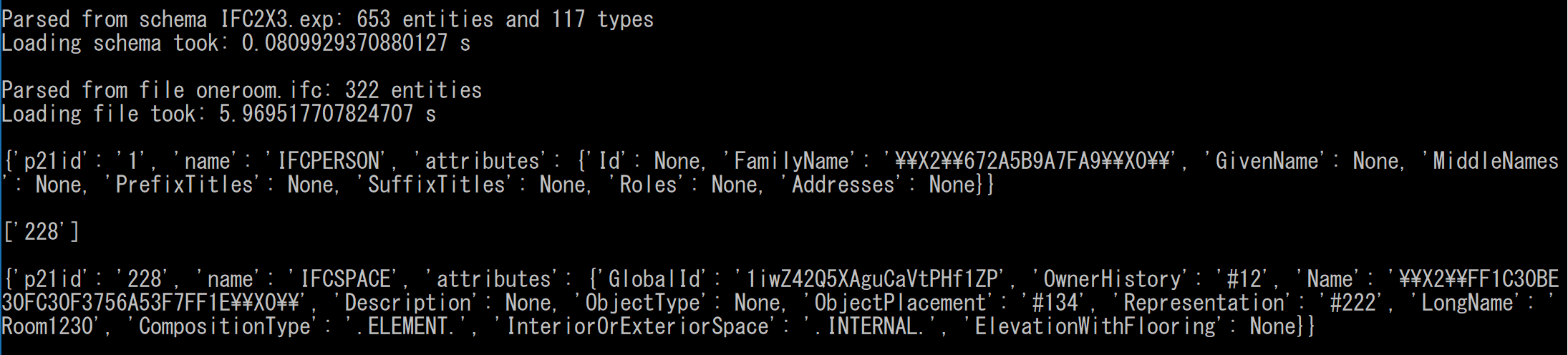 I can use "Print ifcfile.getEntityById(id)" to get the p21id, name and attributes of an Entity as shown in the attached picture.