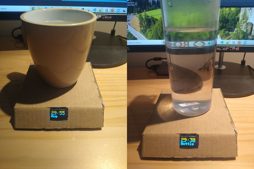 Hydronizer’s hardware component is built with an ESP32 and various sensors such as an RFID sensor for reading the water bottle. An OLED display is also included to view details such as when you should take your next sip of water.