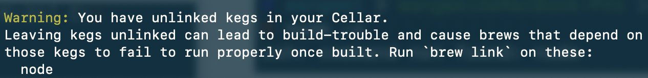 # 首先,安装brew 的node 遇到下面这个问题  ## 运行 brew doctor 提示:  ## 好,我按照你说的运行  ## 好,哪找你说的都做一遍 全是文件夹权限的问题!!!!,OSX11真有你的啊。  ## 解决办法 网上使用了很多修改文件夹权限的问题,都不行???比如下面这个 ```javascript sudo chown -R $(whoami) /usr/local//不行不行不行 ``` 那干脆直接手动修改权限吧! 直接把根文件夹share还有其他报错的文件夹的权限给开咯 **最后选择应用到所有**  # 最后成功