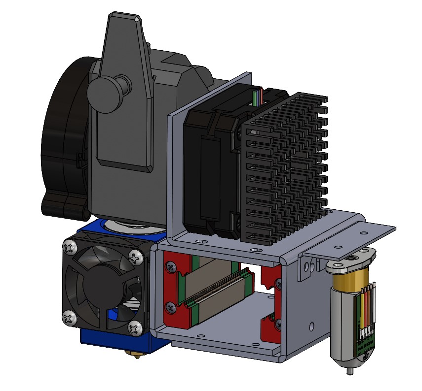 Najważniejszą zmianą z tych wszystkich jest wykorzystanie prowadnic liniowych MGN12, które zapewniają sztywność przy dużych prędkościach. Z powodzeniem od roku używam poprzedniej wersji tego projektu, która wykorzystywała jedną prowadnicę liniową na osi X. Niewielki luz, który jest potrzebny do poprawnej pracy wózka liniowego powodował wibracje stosunkowo ciężkiego napędu direct i drgania. Zastosowanie dwóch prowadnic liniowych z obu stron profila 2020 wraz z systemem kasowania luzu rozwiązuje ten problem.