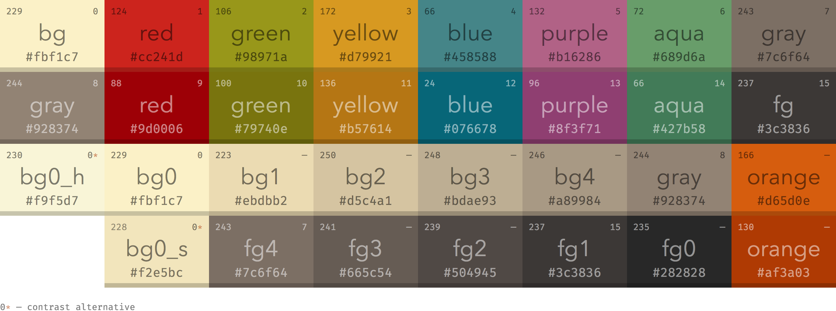 gruvbox is heavily inspired by badwolf, jellybeans and solarized.