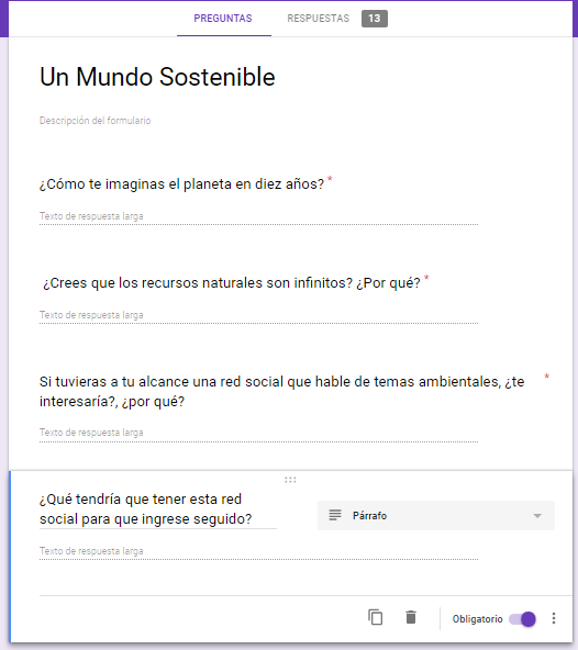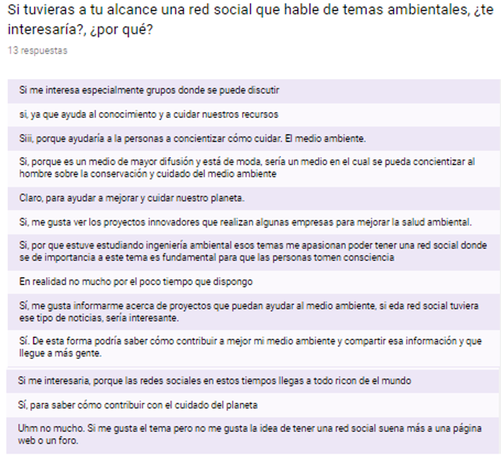 Para validar la idea de una red social orientada a temas ecológicos se realizó un cuestionario que fue realizada a través de nuestras redes sociales (Cuestionario - Mundo Sostenible ).Dichas preguntas se pueden detallar a continuación: