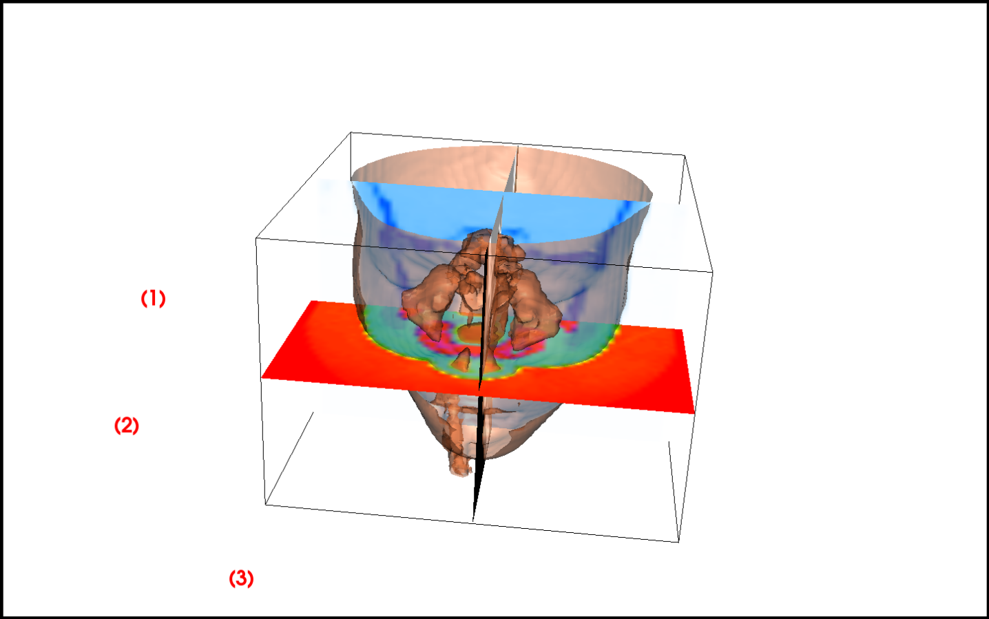(sagittal, axial, coronal), and displays them.