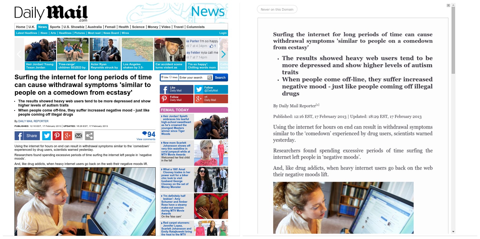 Lens is a chrome extension that allows you to minimize distractions on a webpage. It cleans up a webpage showing you the main content.