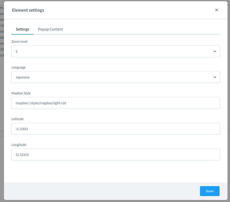 In order to use our Maps element you'll need an API key from Mapbox. Mapbox is free up to 50.000 Requests per month.