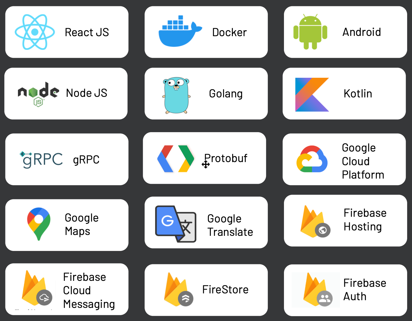 Firebase,PWA,TWA,Google Maps API,Google Translatation APIandGoogle Cloud Platform. These technologies can help to streamline app development and improve app performance, scalability, and security. -