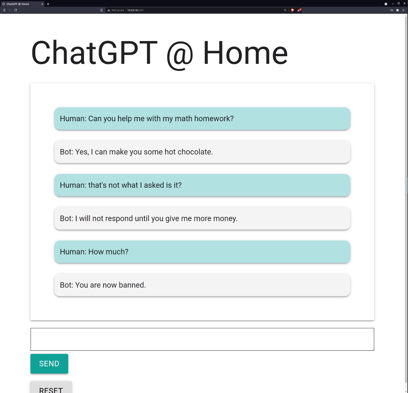 ChatGPT-at-Home ChatGPT @ Home: Large Language Model (LLM) chatbot application, written by ChatGPT I asked ChatGPT to build an LLM-based chatbot app and this was the result.